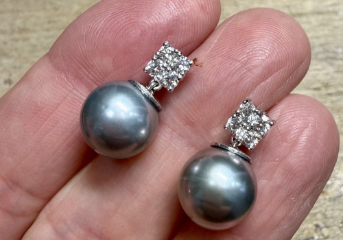 Tahitian Pearl Studs, Diamonds, 18k White Gold