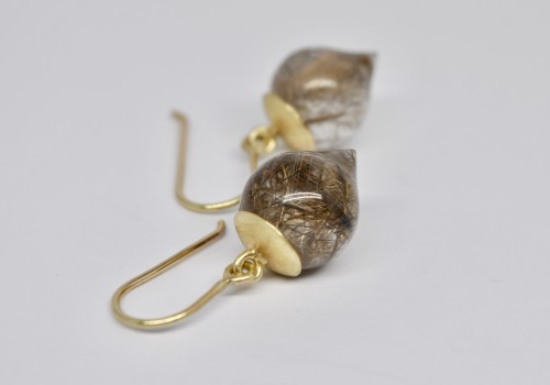 These amazing one of a kind earrings are entirely hand made from 18karat yellow gold and beautifully onion shaped rutilated quartz.