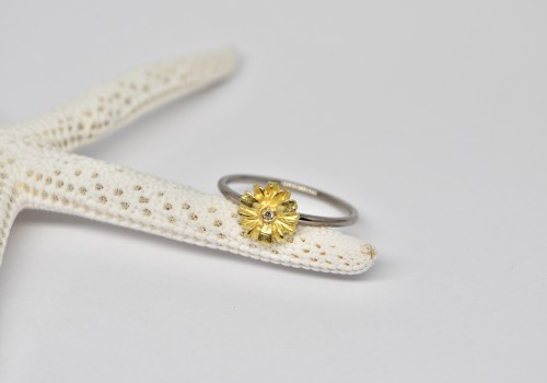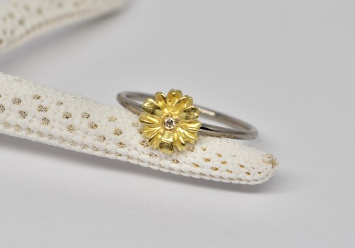 Dainty ring in 18k white gold with 18k yellow gold daisy and 1.5mm diamond.