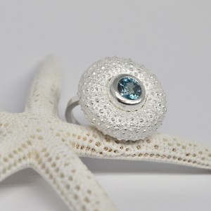 Sterling Silver Sea Urchin Ring With Blue Zircon
