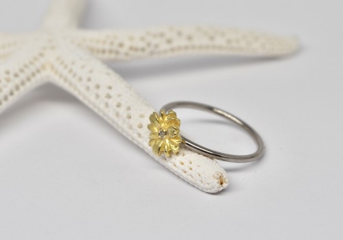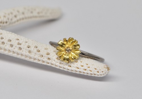 Dainty ring in 18k white gold with 18k yellow gold daisy and 1.5mm diamond.